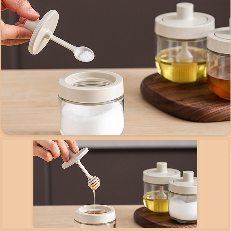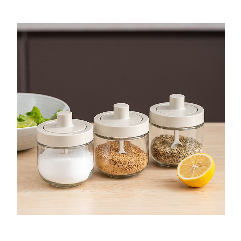 The spice box is made of transparent glass, which allows you to see the contents inside and easily identify different spices without having to open the box. Glass is also non-reactive, meaning it won’t absorb flavors or odors from the spices. The lid of the spice box is designed with a spoon attached or integrated into it. The spoon is typically made of a food-grade material like plastic or stainless steel and is conveniently positioned for easy access to the spices. This eliminates the need for separate spoons or utensils when measuring out spices
