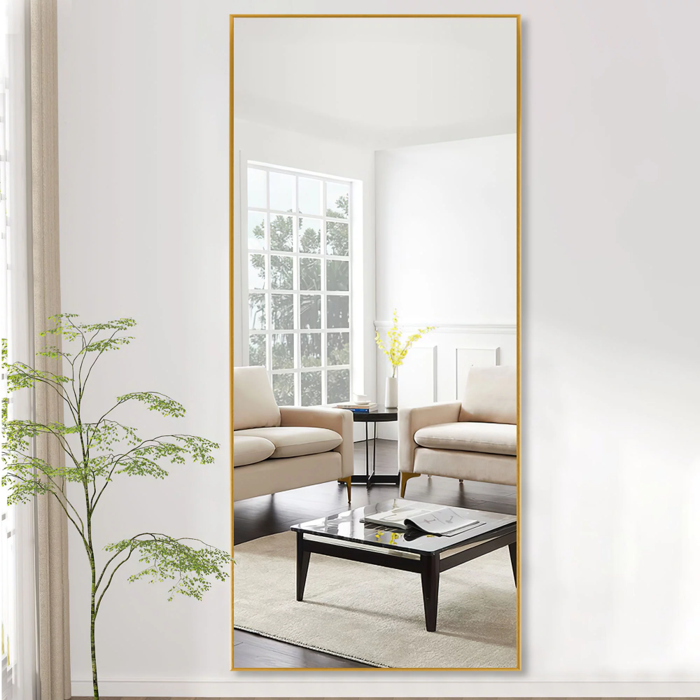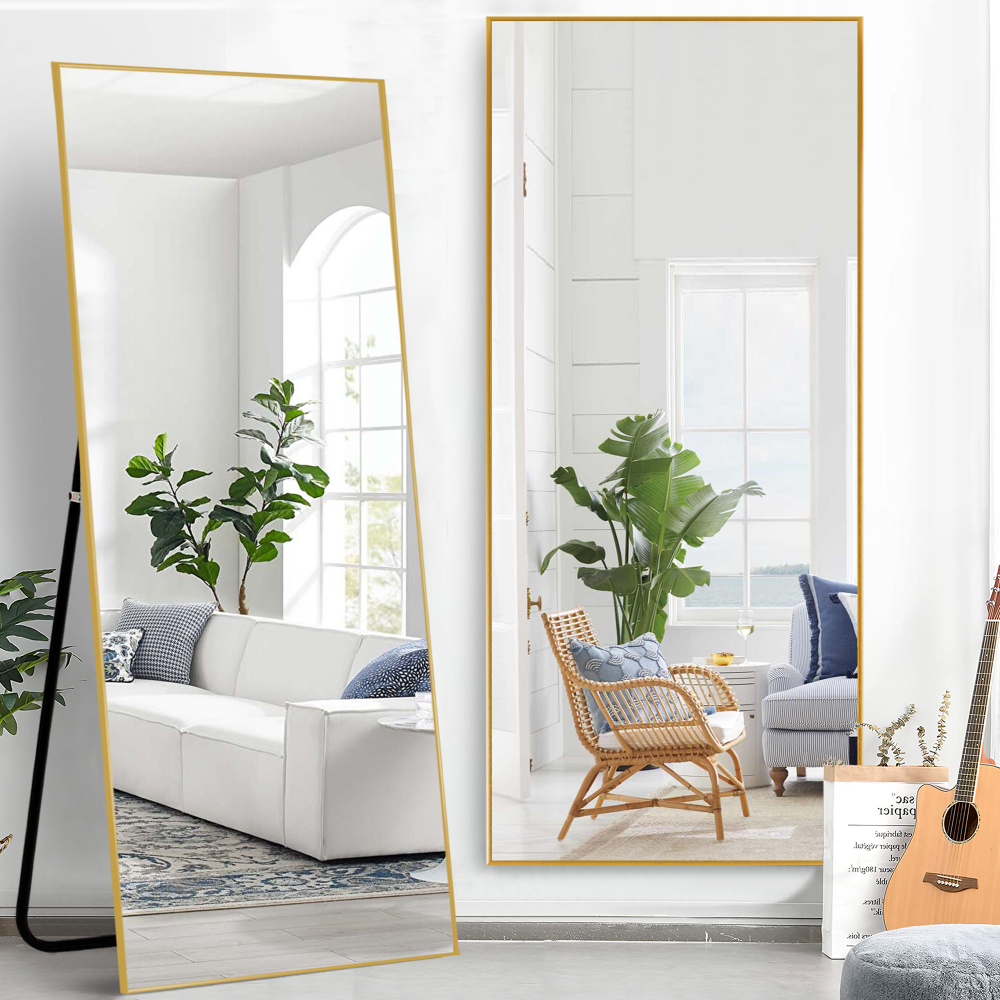 ALUMINUM ALLOY FRAME – The large floor dressing mirror is in uniform color and fine surface because we used matte polished aluminum alloy frames. The aluminum frame is very thin, light but durable, convenient for move and installation.