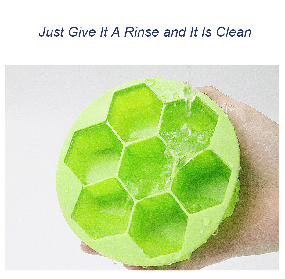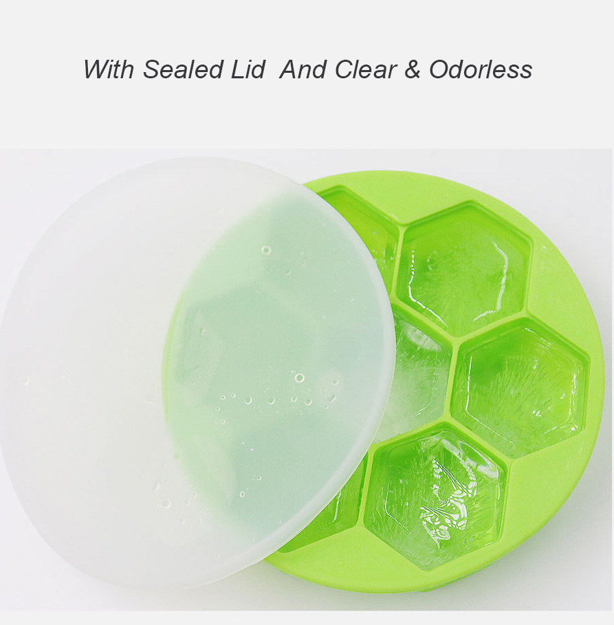 Green Hexagon Ice Cube Tray Silicone BPA Free with Lid
