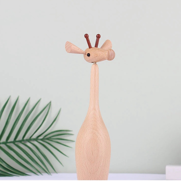 Wooden ornaments giraffe can be 360 degrees activity is made from high-quality materials, processed with exquisite craftsmanship, featuring a delicate appearance and great durability, perfect for party supplies and home decorations.