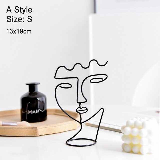The two different figures fit together perfectly. They are single line decor sculptures in a simple design: half head and half face.