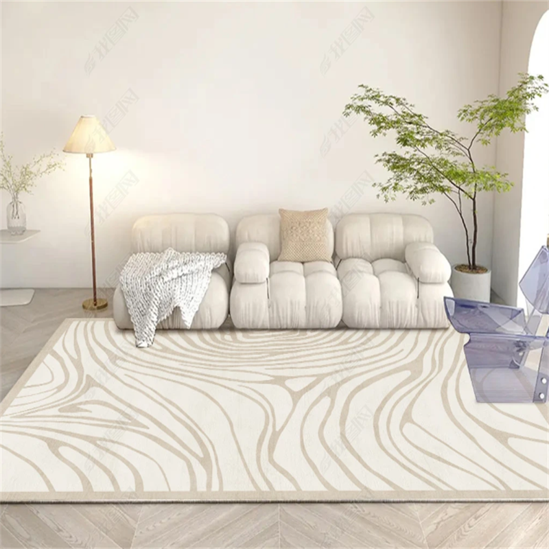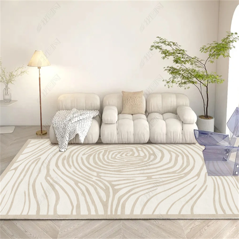 The carpet features a clean and simple design, characterized by sleek lines creates a modern and uncluttered look in your living room.
