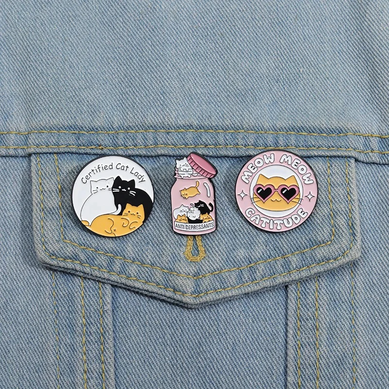 Kawaii Cartoon Bottle Cats Enamel Brooch Lapel Pins (3PCS/Set)