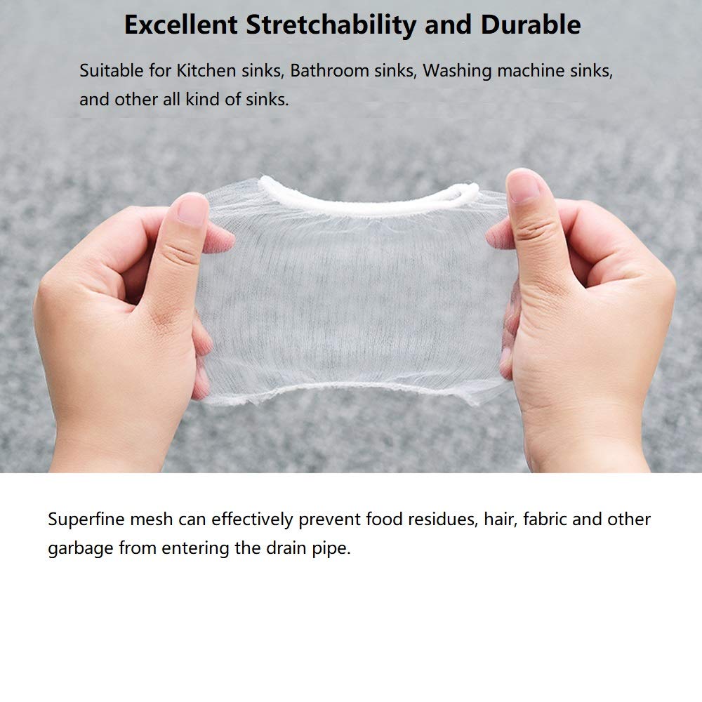 Package Includes: A set of 100 pcs disposable sink strainer bags, if use 2 pcs bags every day, the sink filter mesh bag set would last beyond 1.5 months, which is a great value for your clean works.