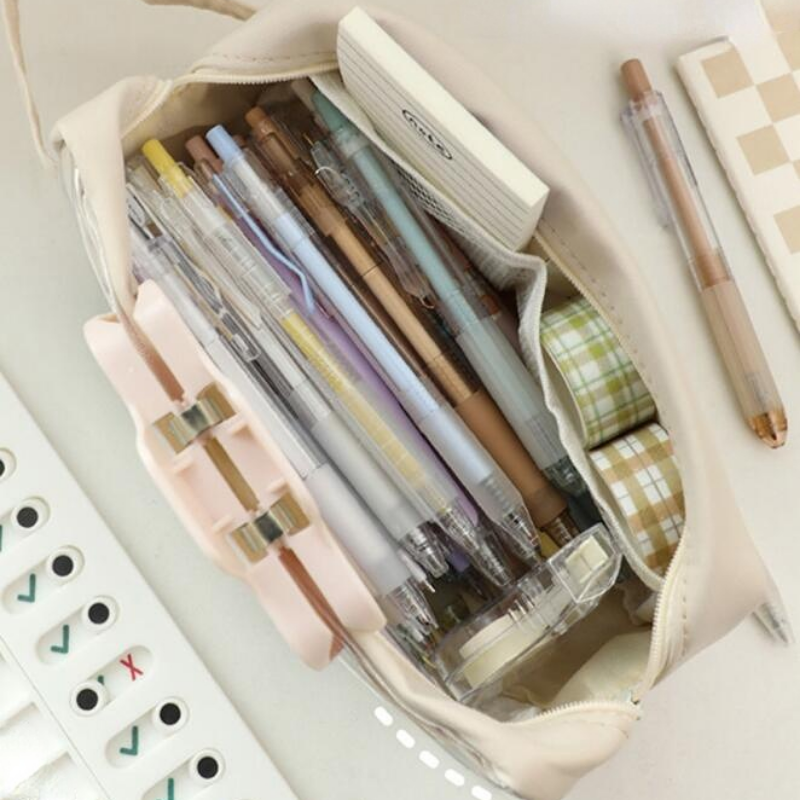 • With its large capacity, this pencil case can hold a wide range of items, including pens, pencils, erasers, rulers, and even small notebooks or cosmetics. The zippered closure keeps everything secure and organized, while the compact size makes it easy to carry around.