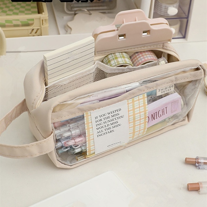 • The Large Capacity Transparent Pencil Bag is a versatile and functional accessory that is perfect for students, artists, and anyone who needs a reliable way to store their stationery and small items. With its transparent design and aesthetic look, this pencil case is sure to make a statement on any desk or bag.