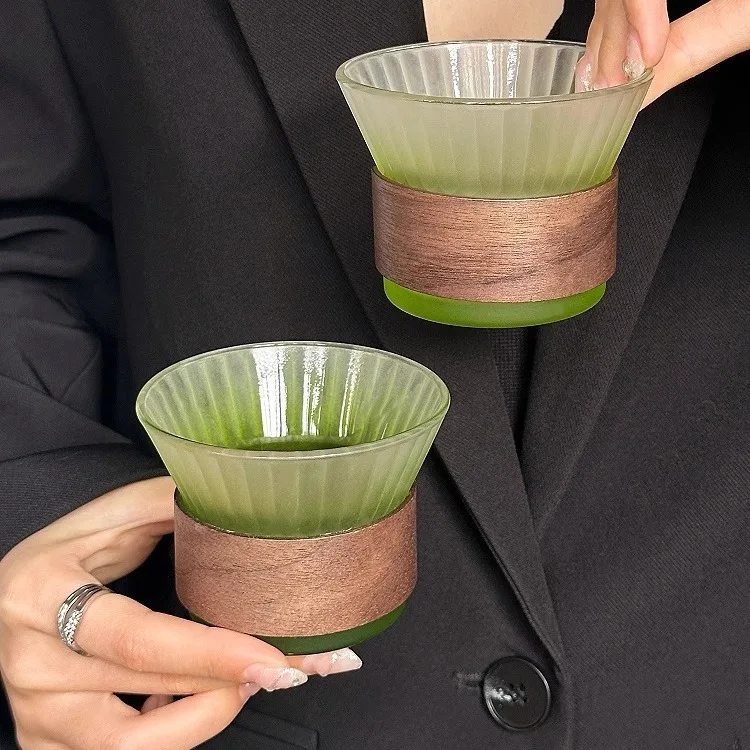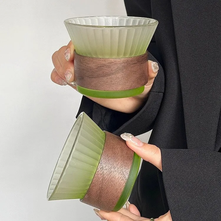 Exquisite Retro Design: Our coffee cups flaunt a delicate transparent glass texture harmoniously paired with a stylish wooden ring, enhancing any table setting. Enjoy your favorite brew in a cup that screams sophistication