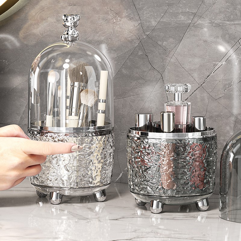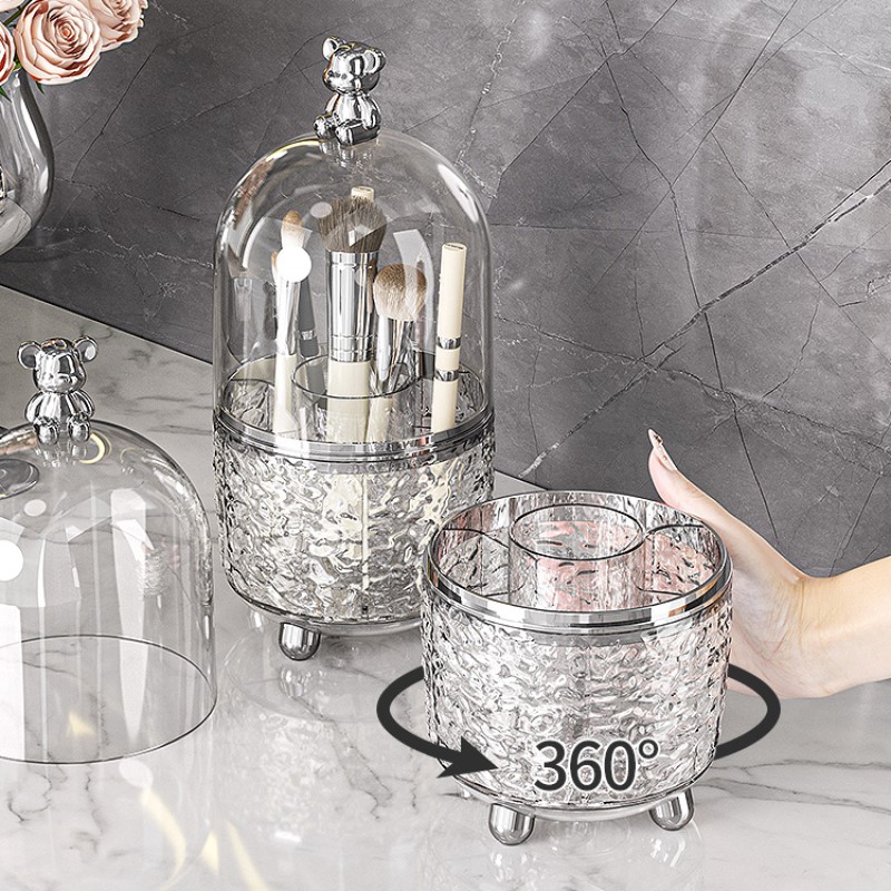 Our makeup brush organizer spins 360 degrees smoothly and steadily, making it easy to access your brushes without wasting any time during your daily makeup routine.The golden elements with the ripple texture design of the bottle make the brush organizer an elegant and chic presence.