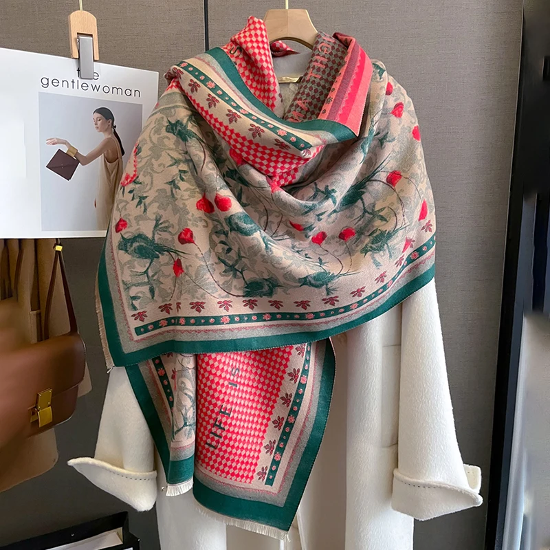 Luxury Floral Print Design Cashmere Poncho Women Scarf