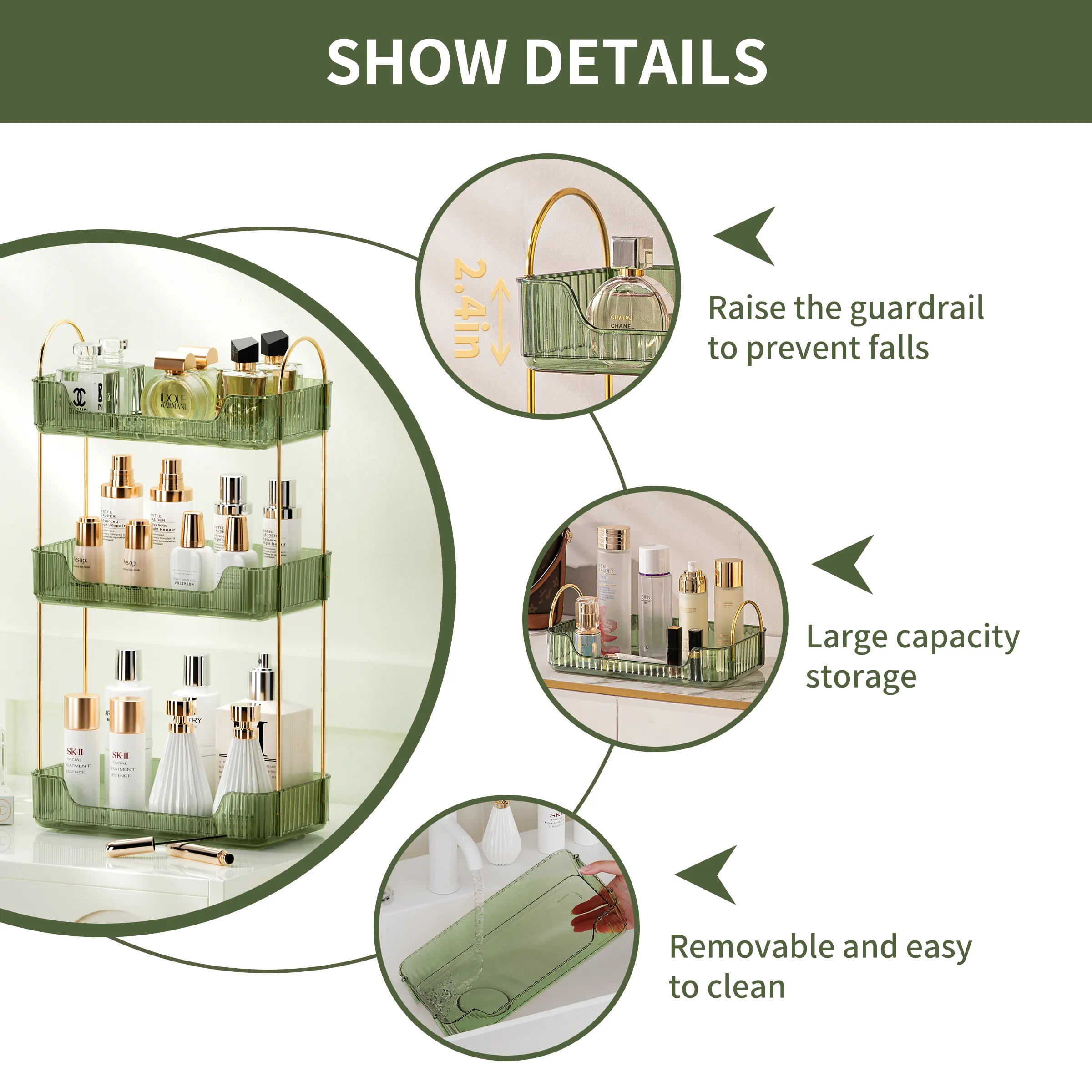 Modern simple style design and home decor complement each other. The storage organizer can easily organize your bathroom dressing table kitchen, and maximize the use of its space