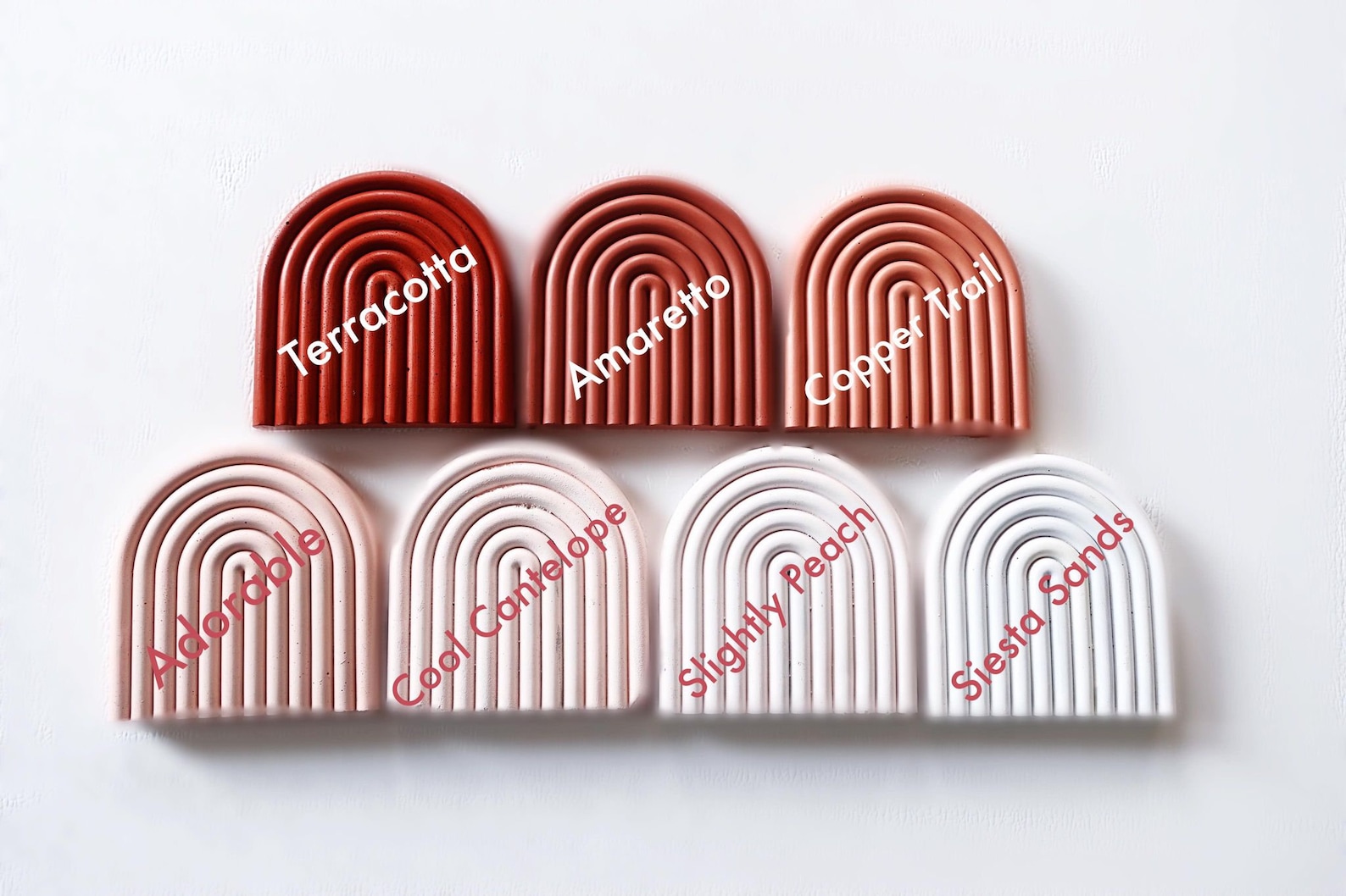 Adorable, Amaretto, Black, Cool Cantelope, Copper Trail, Siesta Sands, Slightly Peach, Terracotta