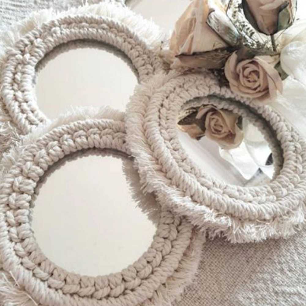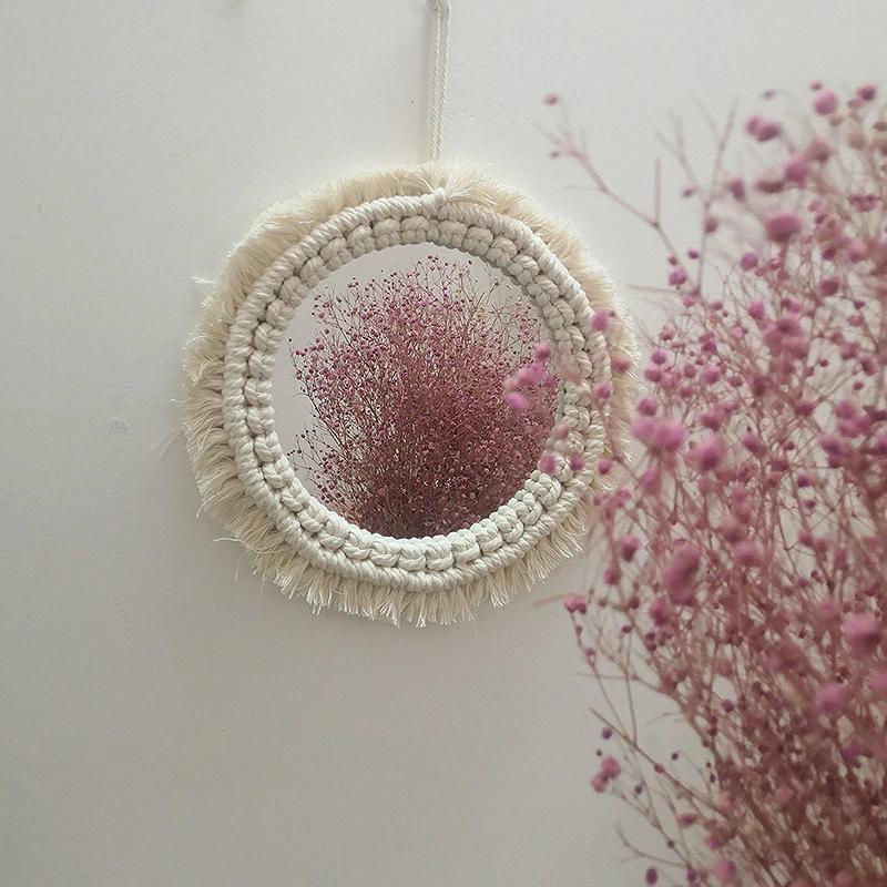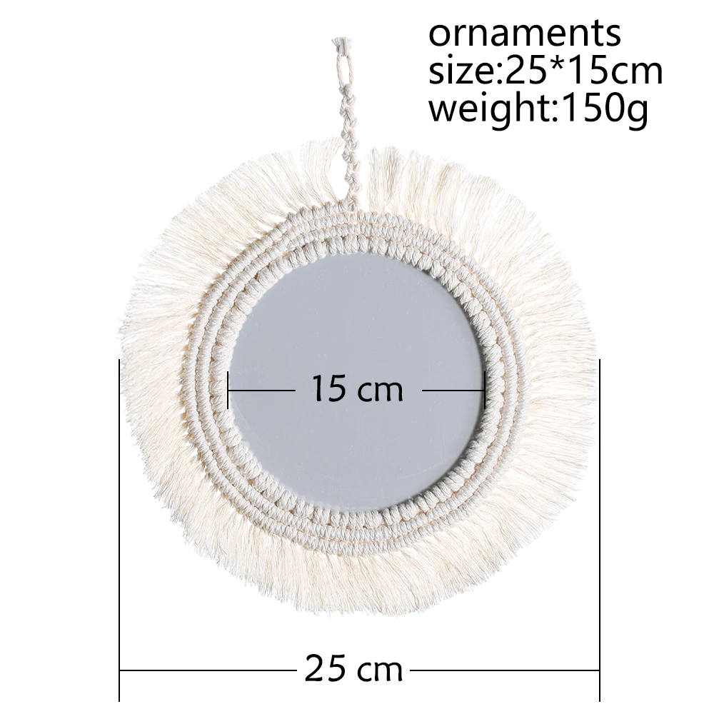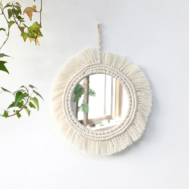 The round wall mirror macrame wall hanging add dimension to a space in your home. It will bring a Bohemian folk and vintage to your decor. Can be placed alone or stacked with others, it goes great with woven mirror. It’s an ornate wall mirror perfect for home decor in vintage rustic style.