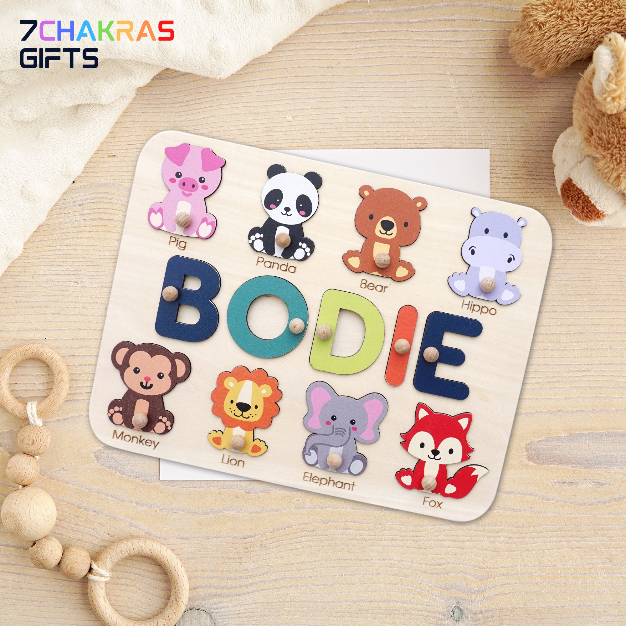 Name Puzzle, Animals Wooden Baby Name Puzzle, Name Puzzle With Pegs, Nursery Decor, Baby Gift 1st Birthday