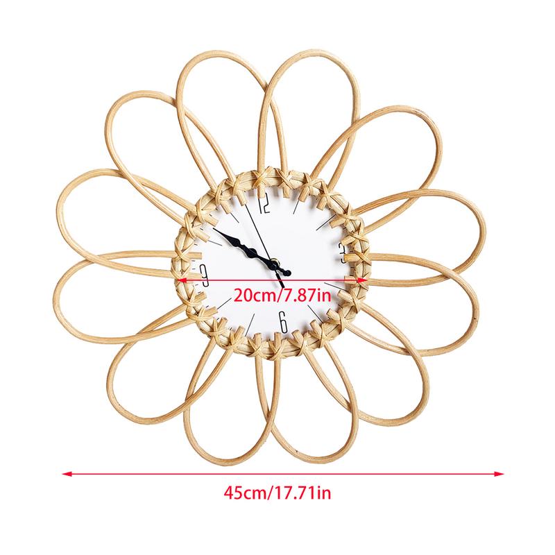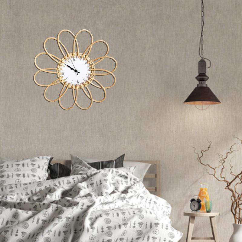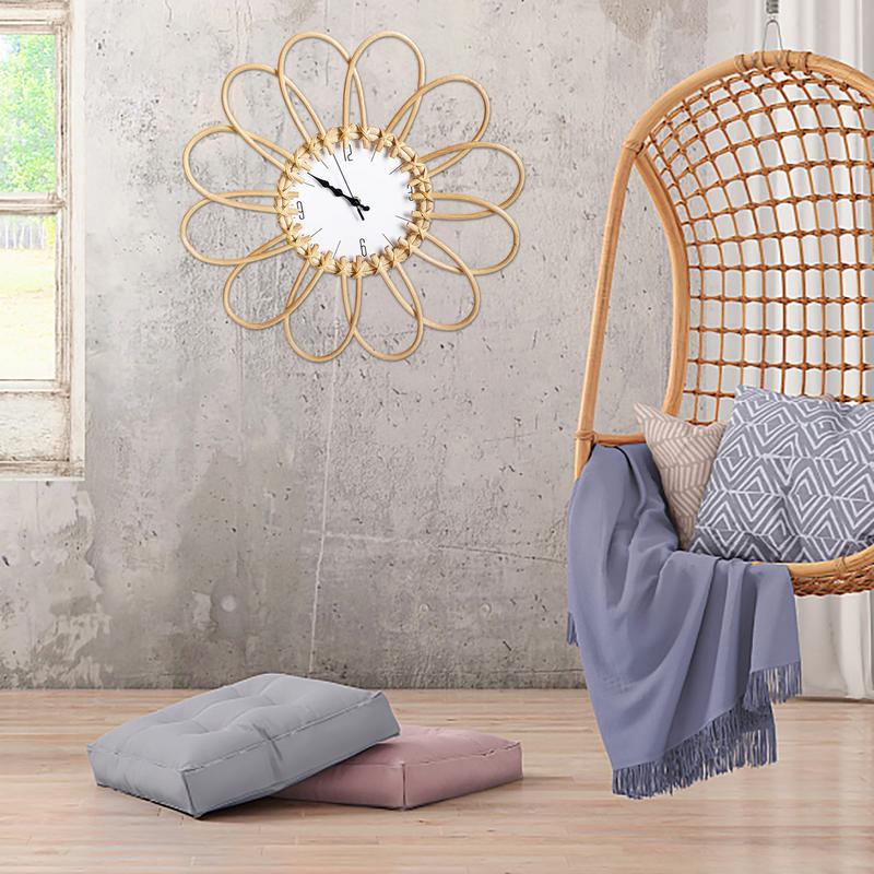Natural Rattan Boho Silent Wall Clock For Home Dcoeration