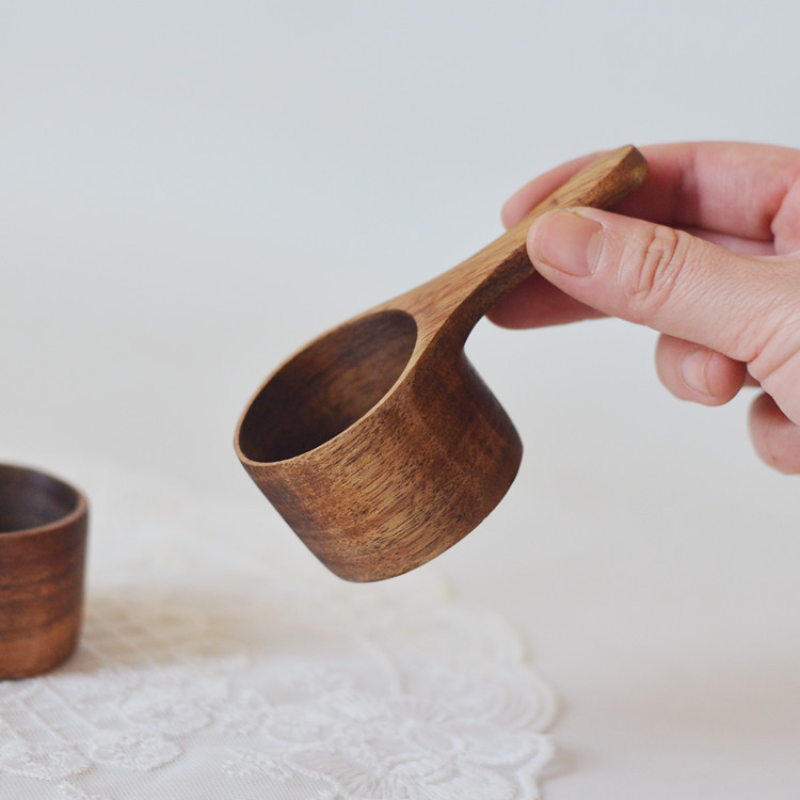 The New Style Measuring Spoon for Coffee Beans is a small wooden spoon that brings a touch of elegance and functionality to your coffee brewing routine.