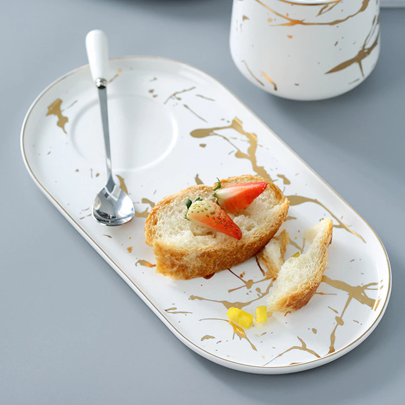 Nordic marbled Ceramic Milk Mug coffee cup and creative saucer set Breakfast Plate Porcelain Marble and Saucer Person Set