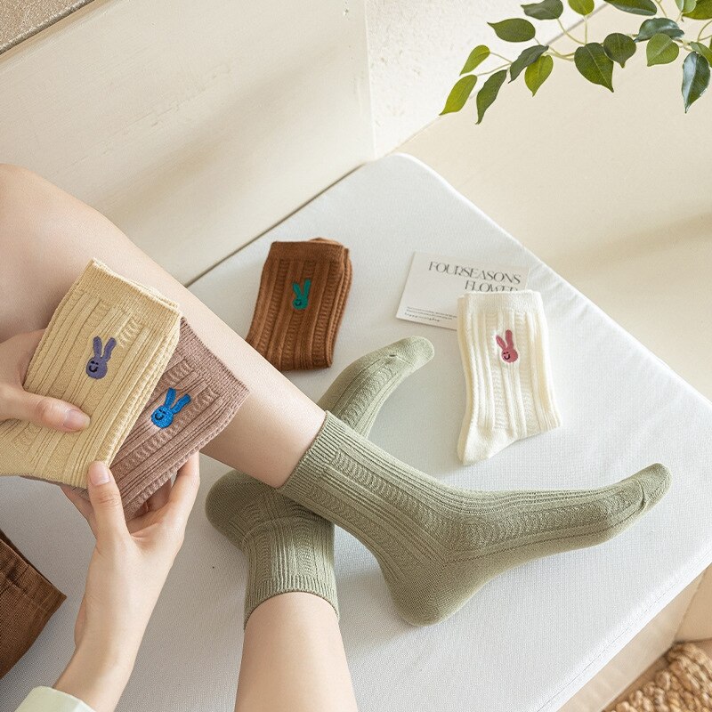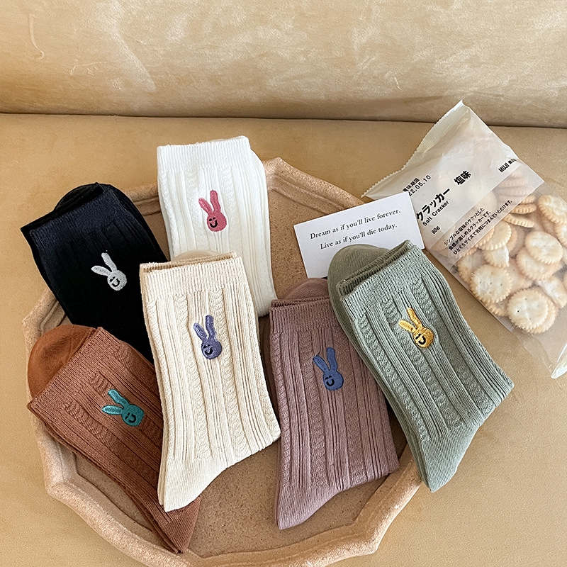 Novel Cute Embroidered Cartoon Rabbit Women Socks