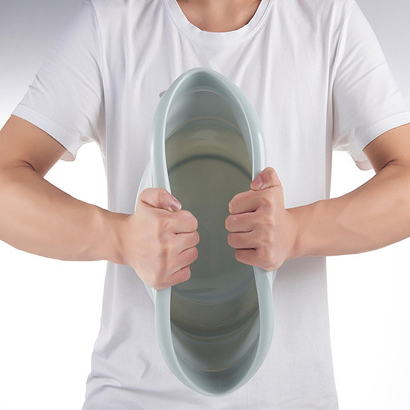 The basin is made of flexible and durable silicone material, which allows it to fold and collapse easily when not in use, making it highly portable and space-saving. When expanded, it forms a sturdy and leak-proof basin with sufficient capacity for various tasks