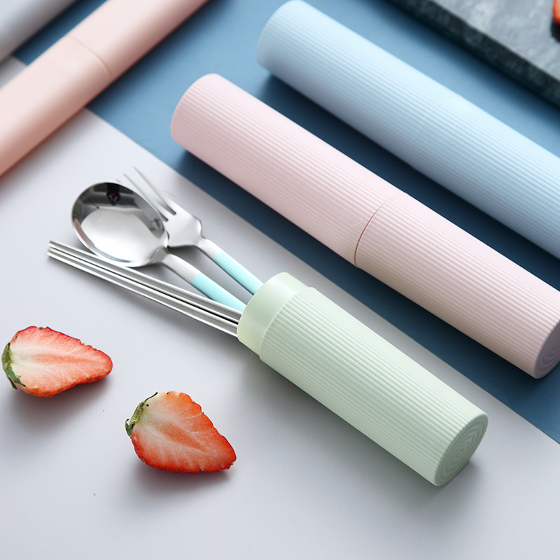 - Each set includes a fork, knife, spoon, and a pair of chopsticks, all housed in a compact and lightweight carrying case.