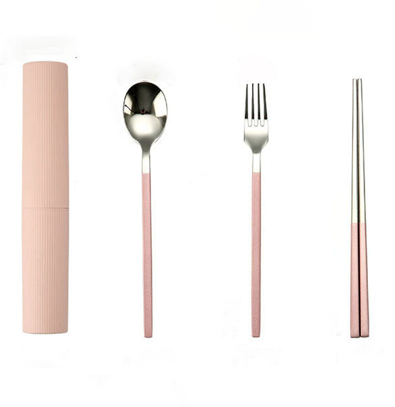 - Introducing our Portable Cutlery Set, made from high-quality stainless steel. This sleek and durable dinnerware is perfect for your everyday use or to take with you on-the-go.