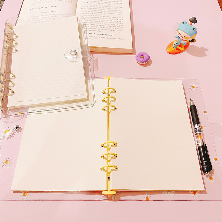 - This notebook features a transparent PVC cover with a cute little daisy design, making it a delightful accessory to carry with you.