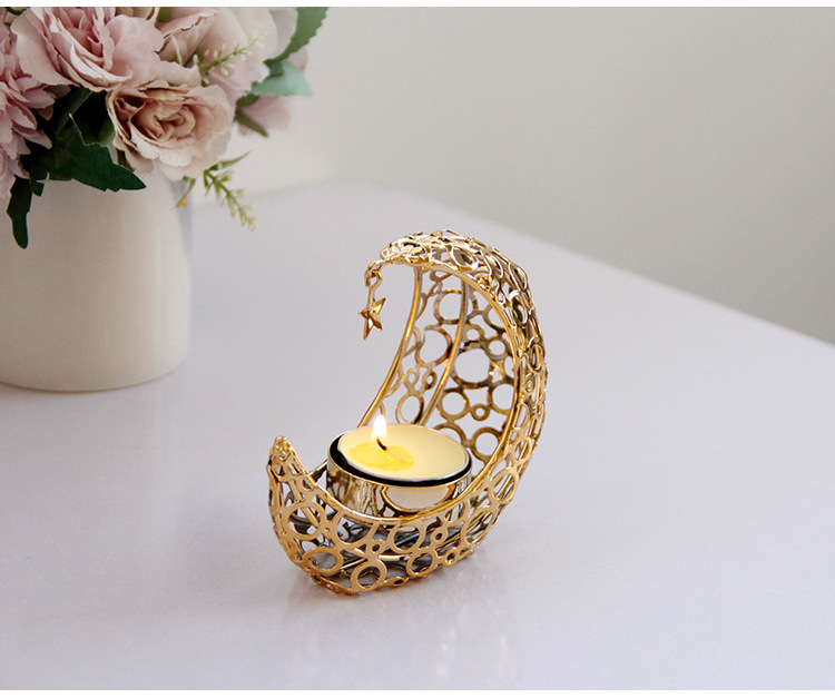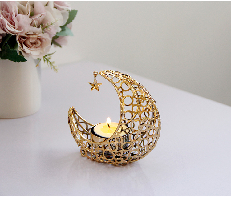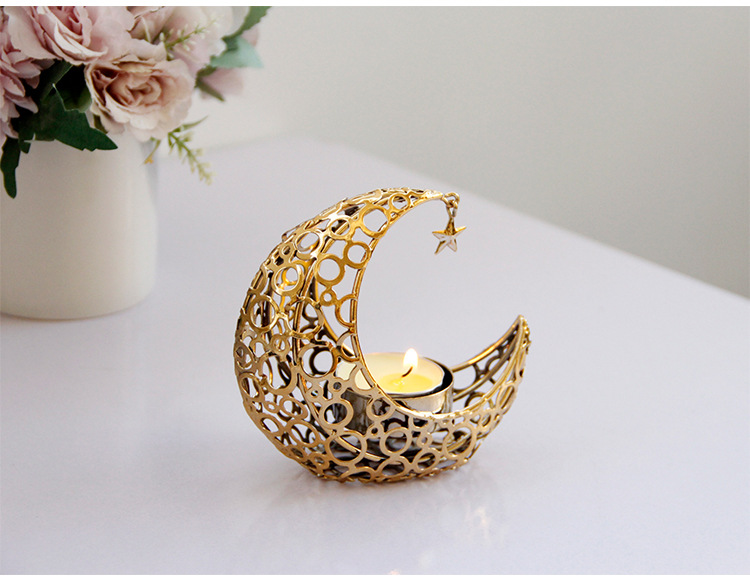Ramadan Golden Moon Star Candle Holder Candlestick Home Decoration