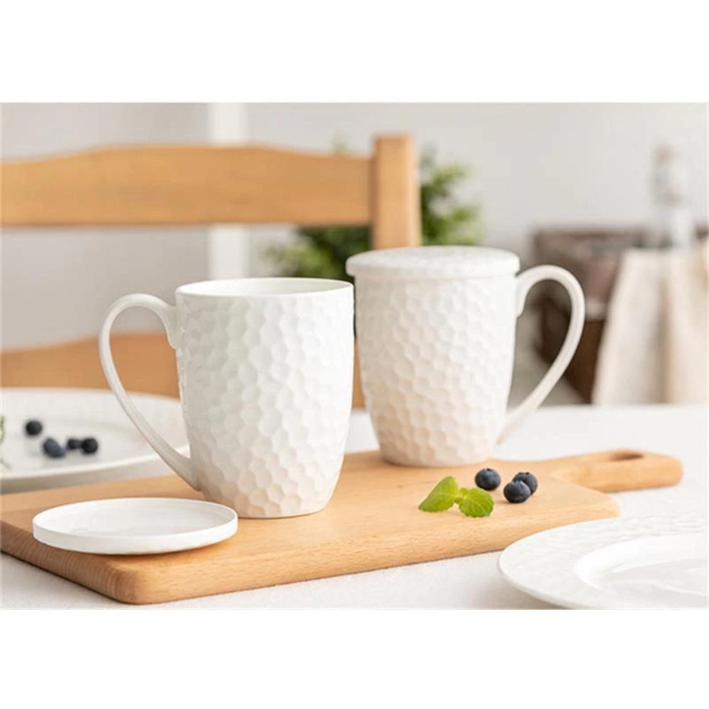 Real bone china coffee mugs with lid, creative 3D water design, porcelain espresso cups, water bottle tasse cafe tumbler