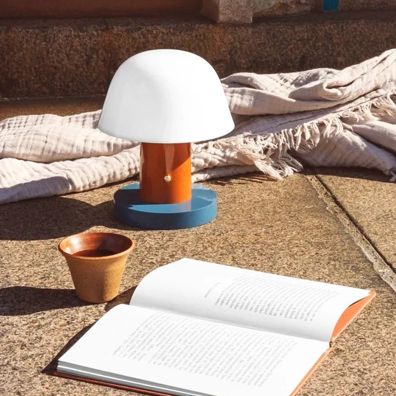 Named after the Spanish word for mushroom – describing the whimsical design shape – the Setago Portable Table Lamp, designed by Jaime Hayon, gives off a soft, uniform glow. It’s rechargeable and dimmable—offering just the right amount of light wherever you need it.