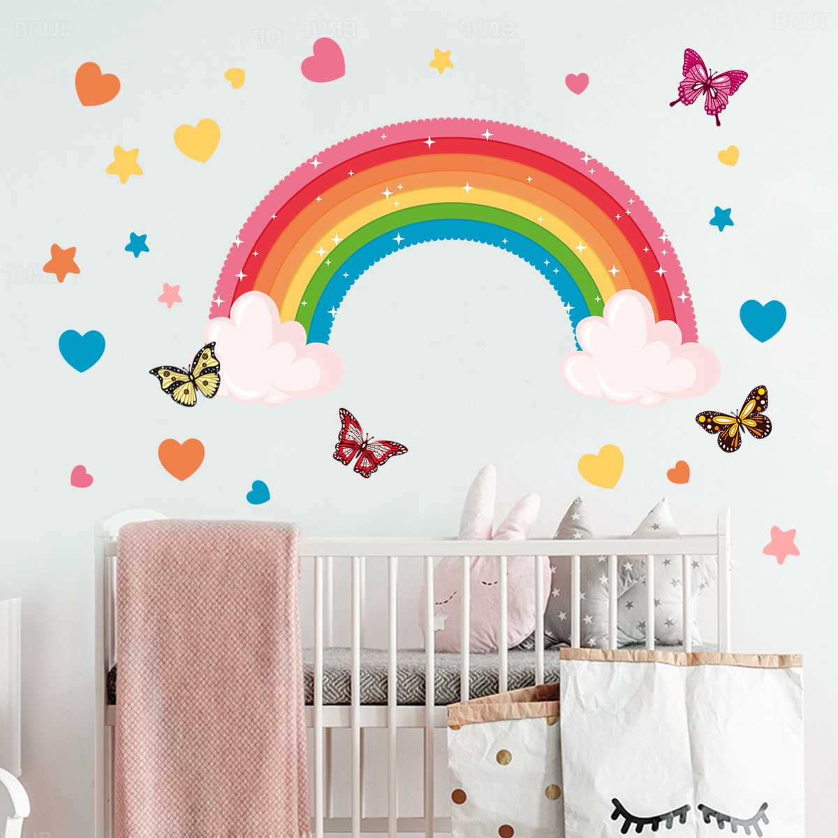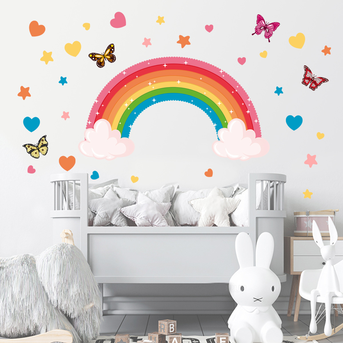 - The rainbow wall decal set is made from vinyl material, safe and waterproof, can be removed easily when you need and would not leave residues.