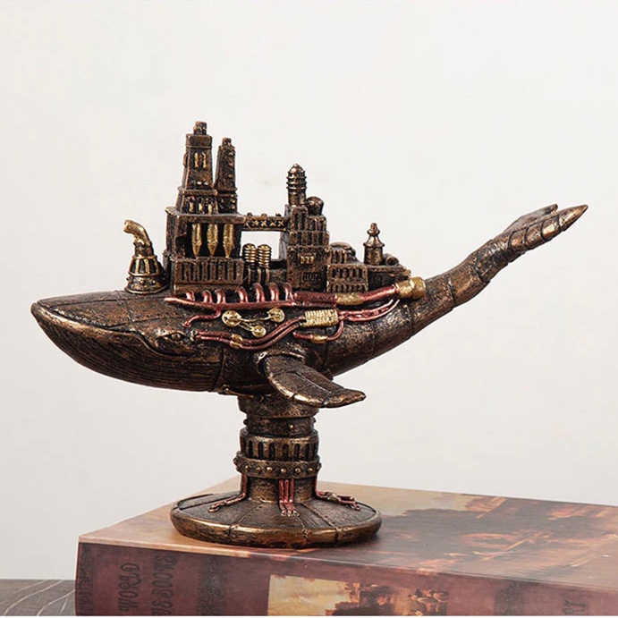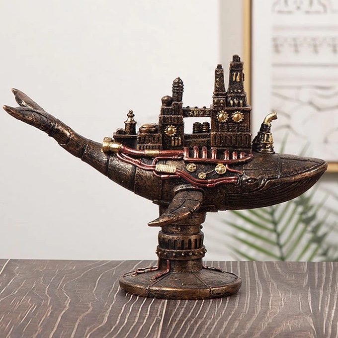 Resin Retro American Steam Punk Whale Boat Steampunk Figurines Interior Home Office Desktop Decor Object Accessories