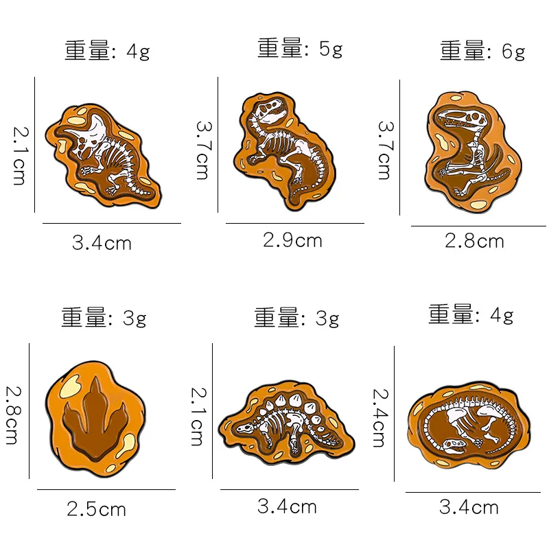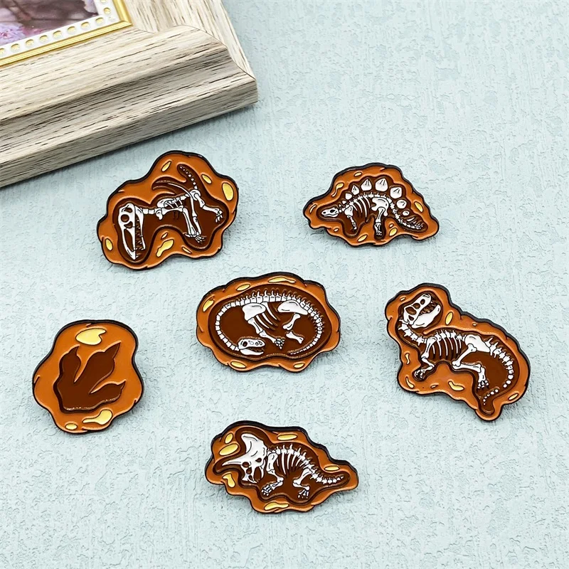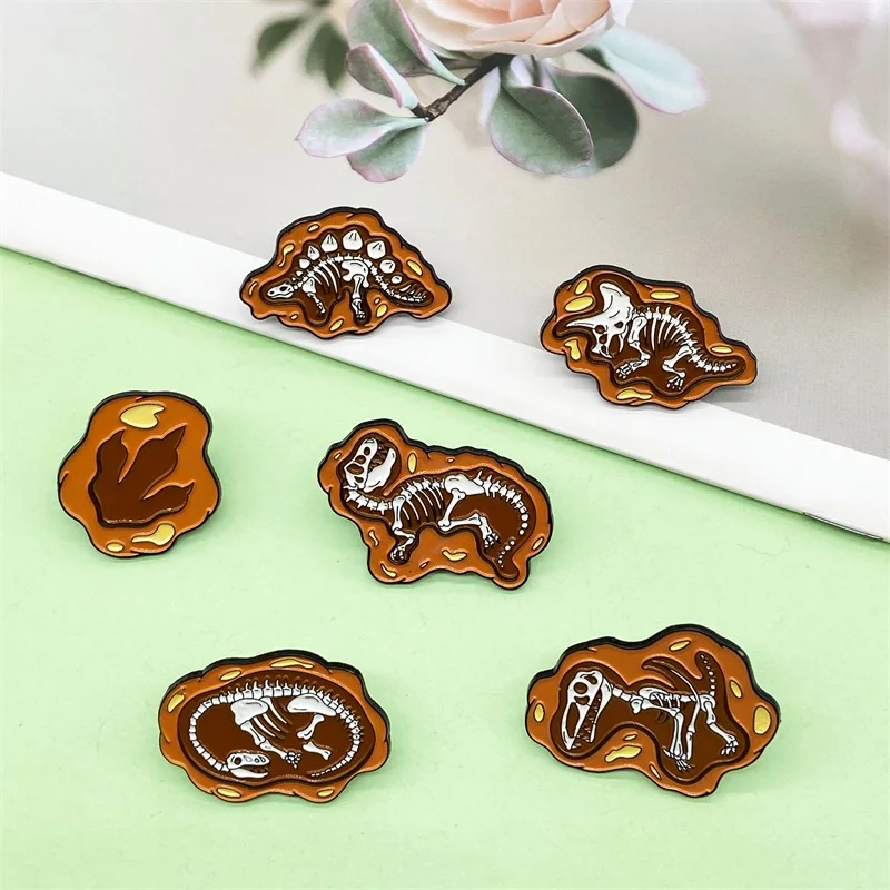 Retro Punk Weathered Stone Dinosaur Design Metal Enamel Brooch Pins (6PCS/Set)