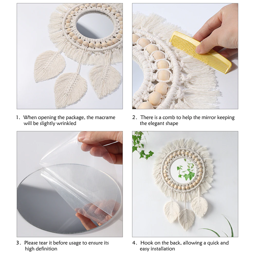 Our macrame wall hanging is made of 100% pure cotton cord and acrylic mirror, sturdy, durable and premium quality. Exquisite weaving process design, elegant and chic.It is a beautiful wall art, creating a sense of harmony and comfort for your room.