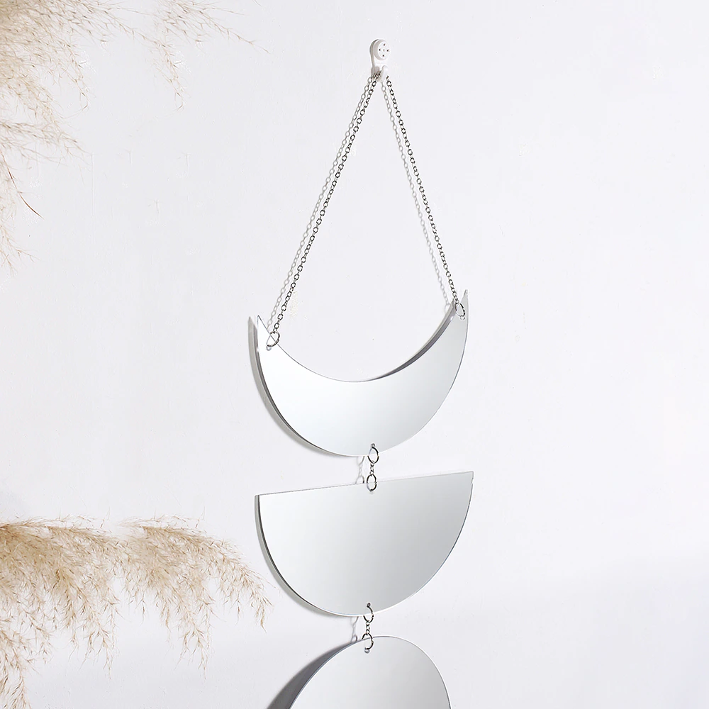 Spiritual Decor: Phases Of The Moon – express your personality and spirituality with our Moon Phase Mirror. This Silver Wall Decor will add unique vibe to you home , brings in healing energy , lunar luxe and some special meaningful touch