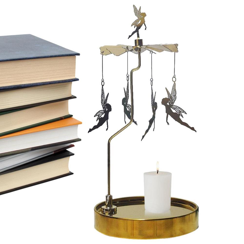 Light a candle, and place it directly under the fan of Spinning Candle Holder. The heat generated by the burning candle will drive the fan to rotate.