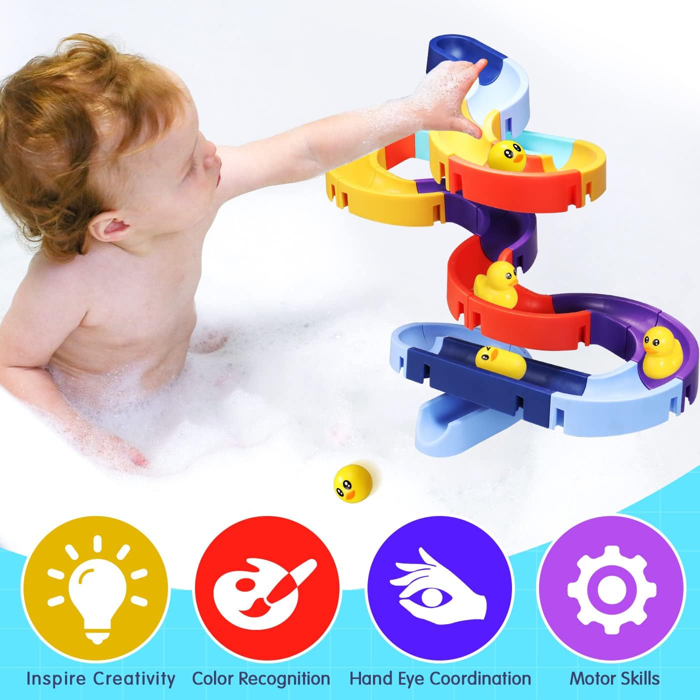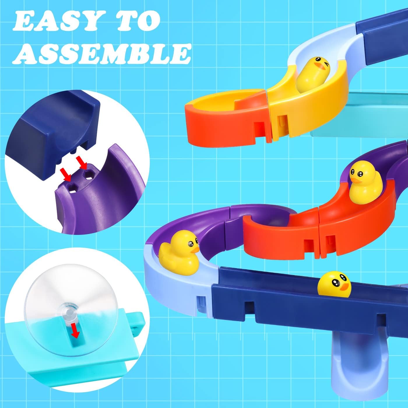 Transform bathtime into an exhilarating adventure with the Splish Splash Slide! This 34-piece DIY bath toy set allows your child to construct their own water slide, complete with adorable little ducks, turning routine baths into a playground of creativity and fun.​