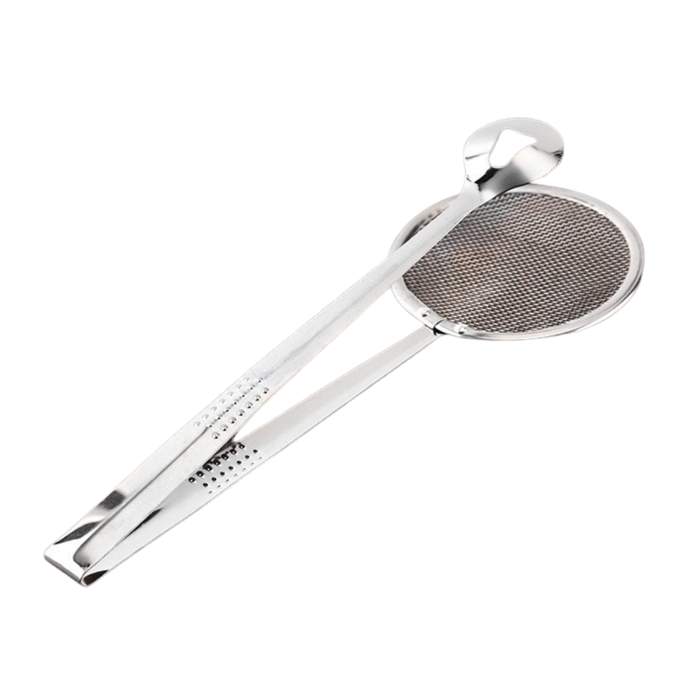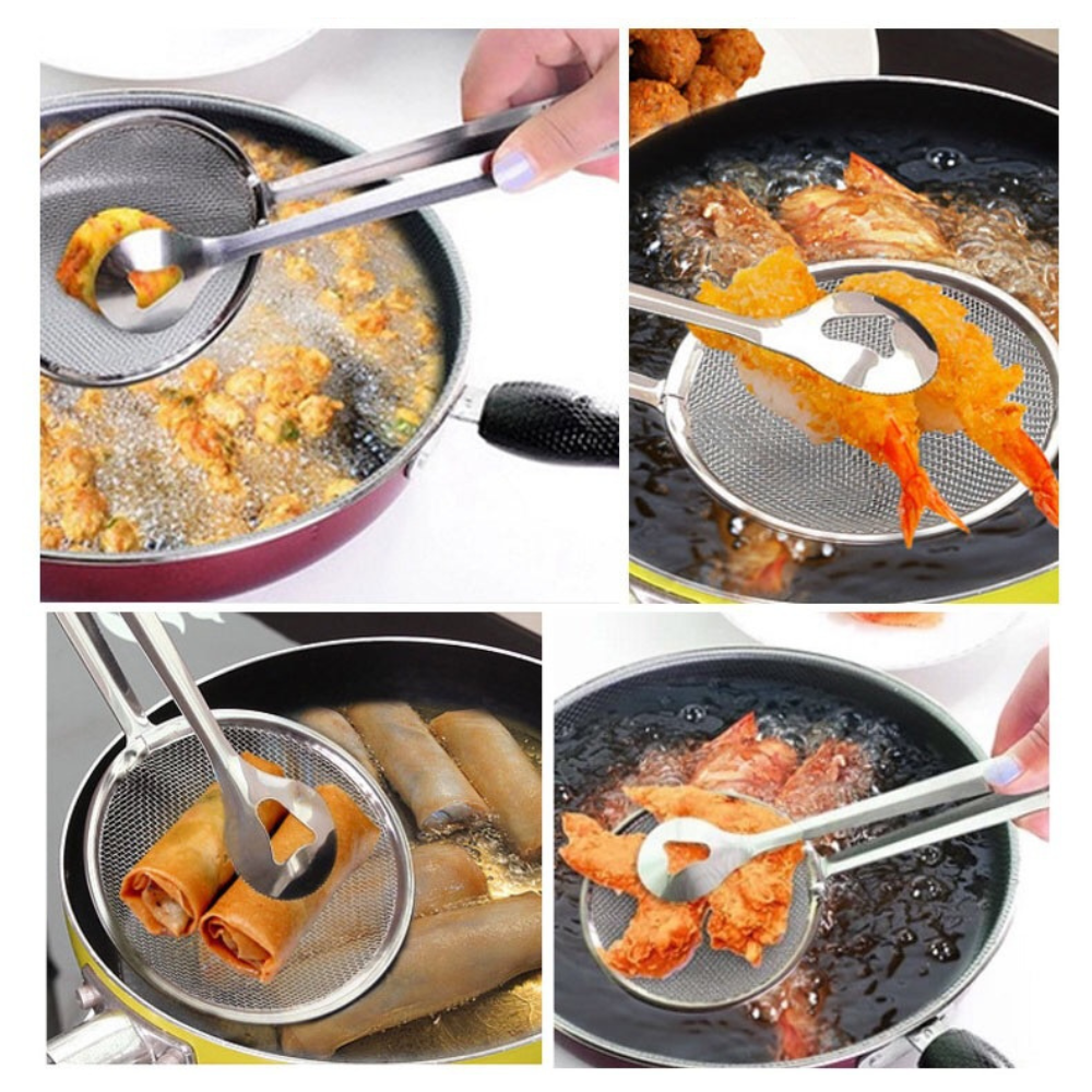 Precision perforation: the combination of filter mesh spoon and clamp, fine filter mesh, and filter spoon with clamp, it is easy to handle when filtering oil and frying food