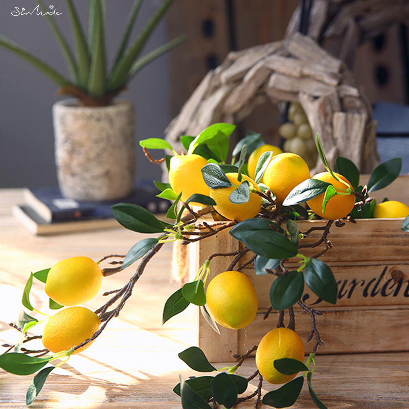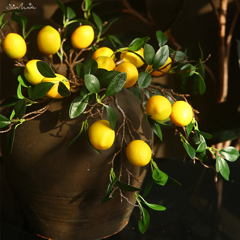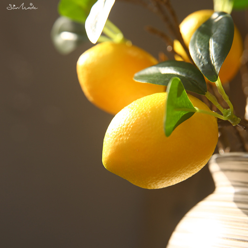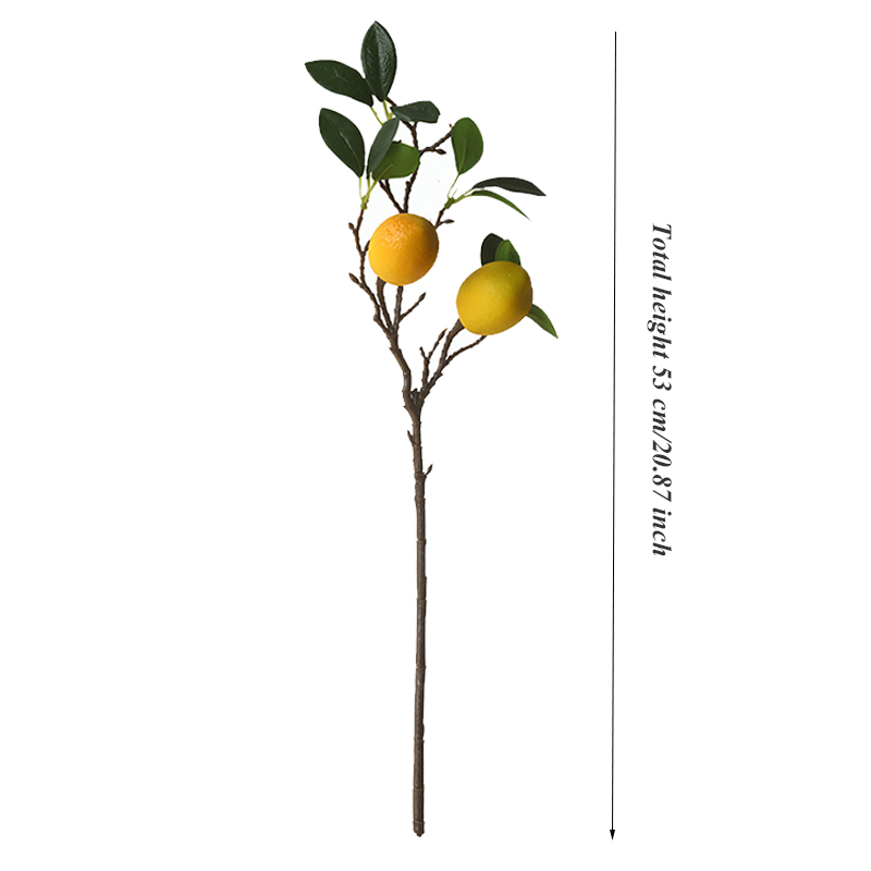 Introducing the SunMade Luxury Lemon Fruit Branch with Green Leaves, the epitome of elegance and freshness for your home decoration. This exquisite artificial branch features stunning lemon fruits in a luscious yellow hue, accompanied by lush green leaves that mimic the beauty of a real lemon tree. The impeccable craftsmanship and attention to detail make it a perfect centerpiece or accent for any space, be it your living room, kitchen, or dining area. With its lifelike appearance, this branch adds a touch of natural beauty and vibrant energy to your surroundings, all without the need for maintenance or watering. Elevate your home decor with the SunMade Luxury Lemon Fruit Branch and enjoy its everlasting beauty.