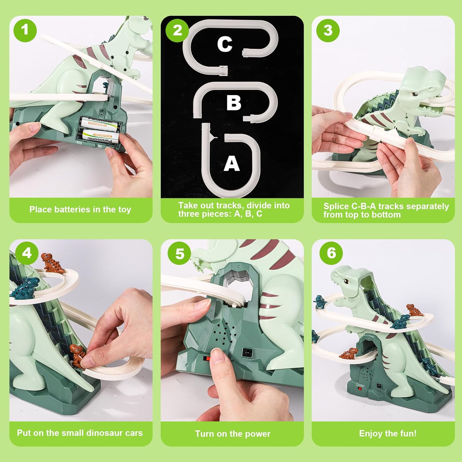 The bright colors, silly dinosaur faces, and thrilling track design spark storytelling and pretend play. Will the dinos race Rescue each other Get stuck in a volcano It’s up to your child’s imagination.
