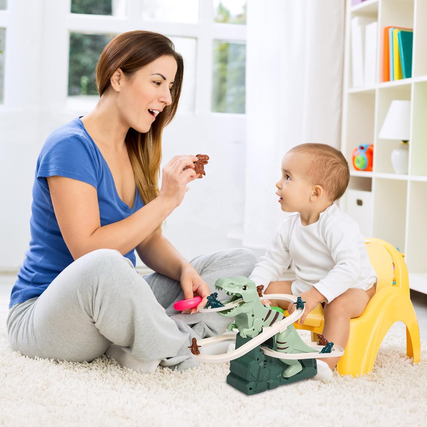 Why play with boring toys when your child can launch dinosaurs into a light-and-sound adventure With the T-Rex Slide, kids drop mini dinos into the mighty T-Rex and watch them zoom, climb, and glide again and again in a non-stop motion loop.Â