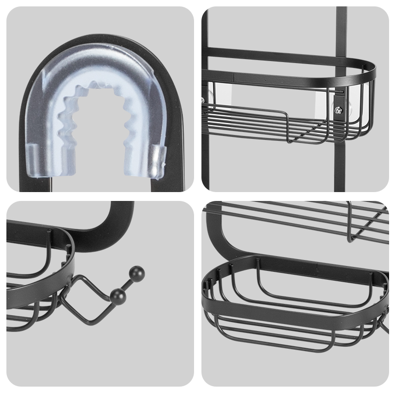 - No mounting or hardware required. Simply buckle two separate baskets together and place shower caddy over shower head. Added two suction cups and non-slip collar ensure shelf not swing or shift with use