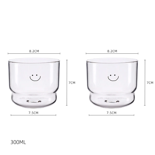 Transparent Smile Heart Pattern Coffee Glass Cup Home Tea Milk Beer Mug Wine Drinks Breakfast Glass Cute Couple Gifts Cup