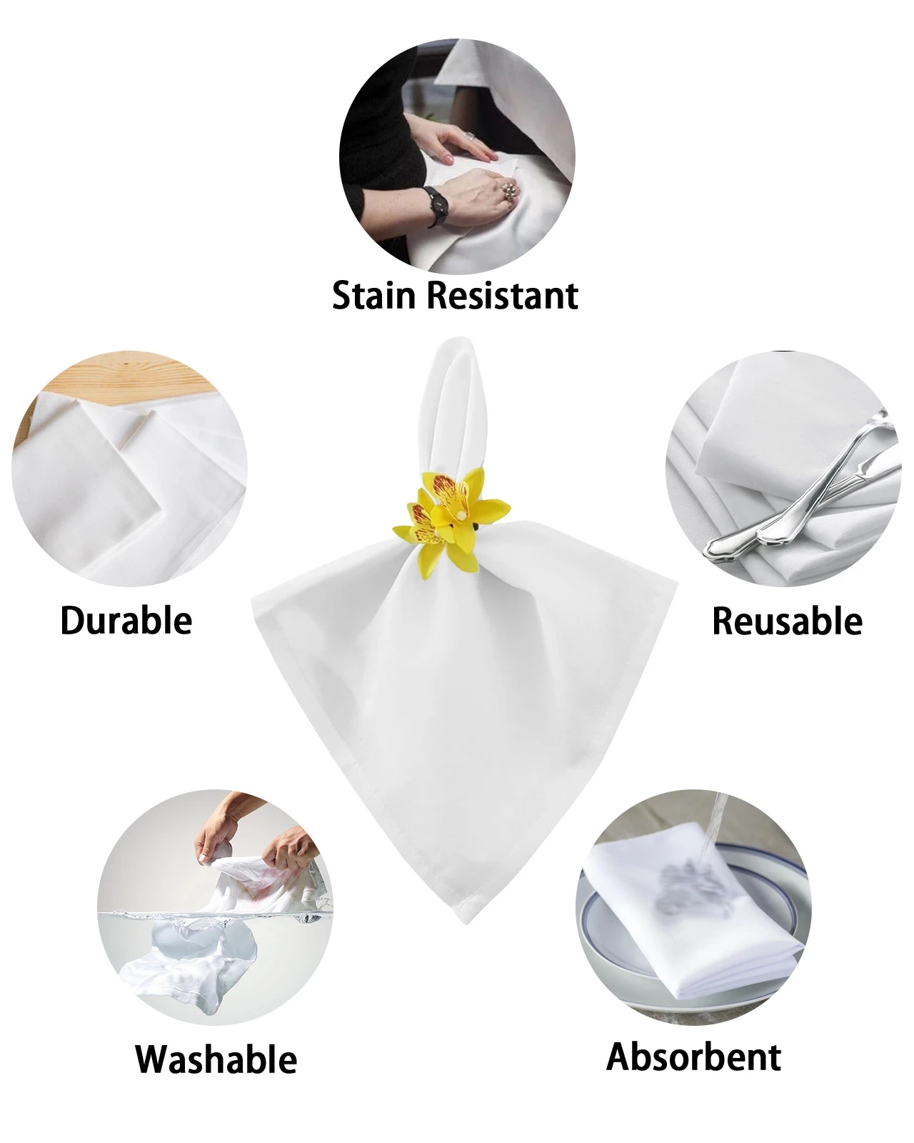 Widespread Use: It is suitable for many formal occasions, such as wedding banquet, dinner, conference, celebration, ceremony, all kinds of parties, etc.; And it can be used as a decoration and common tool for hotel, family restaurant, kitchen;