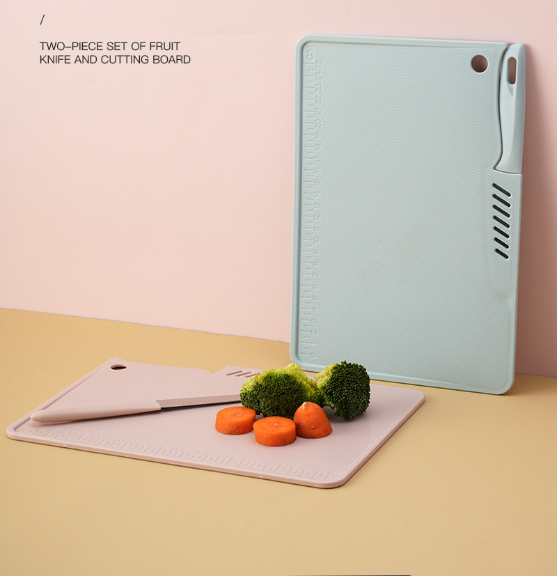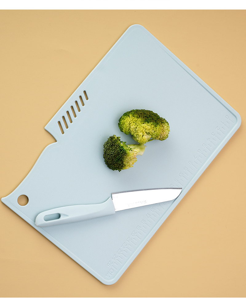 The PP cutting board and knives set is made with a sharp stainless steel blade, perfect for cutting, and the soft-grip handle provides greater comfort and control when chopping.