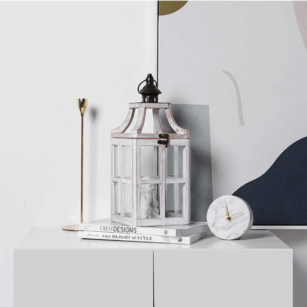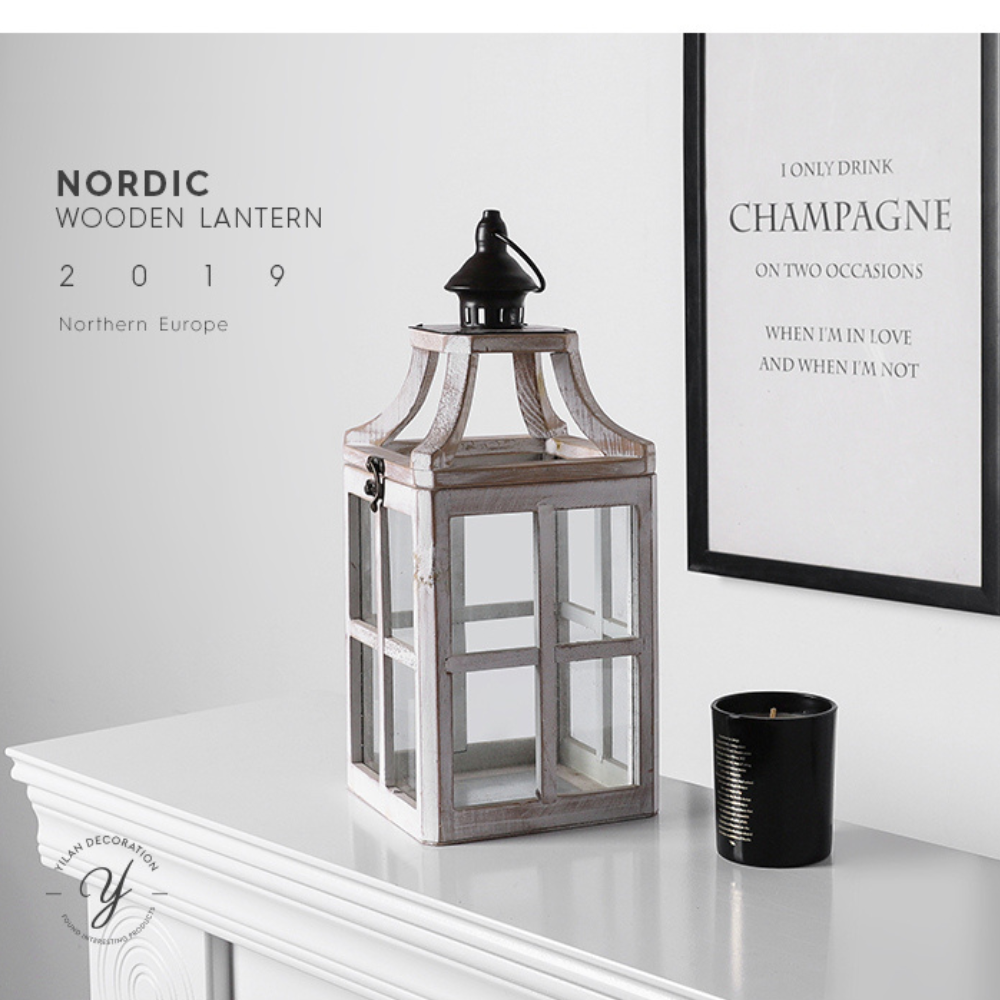 Vintage Nordic Wooden Candle Holder Lantern Metal Wedding Table Centerpieces Candle Holder White Hanging Lantern Home Decor New
