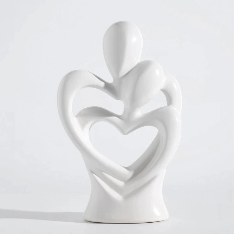 Heart In Heart Sculpture Abstract Ceramic Electroplating Lover Figure Hug People Statue Bust Wedding Gift Home Decoration