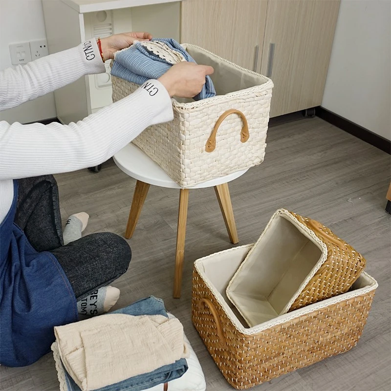 High quality: Handmade basket by craftsman by natural eco-friendly corn husk.It is sewn by hand using the winding method to form a flexible textile that is hard enough to maintain its shape.