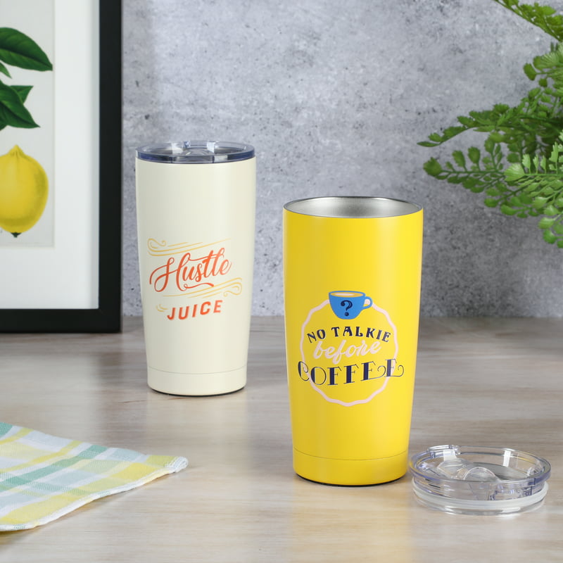 What’s in the box: Two 20oz stainless steel tumblers with lids