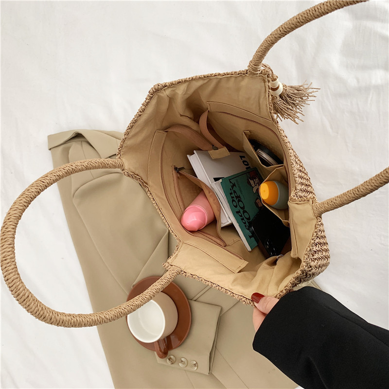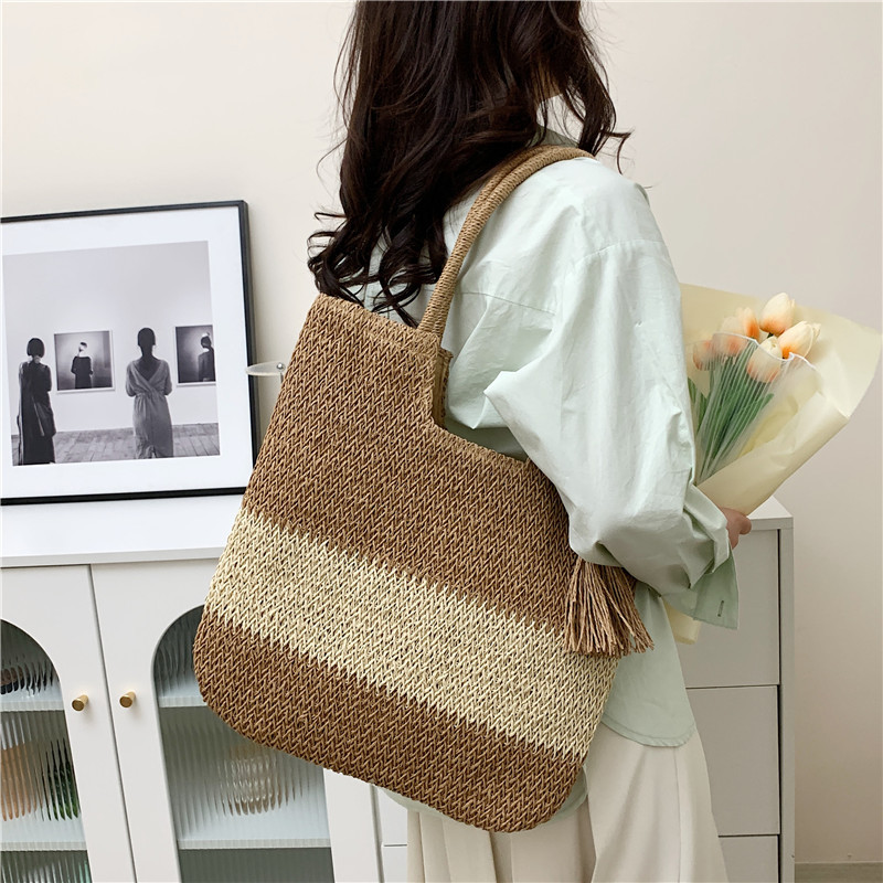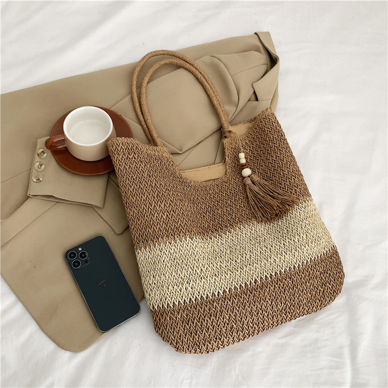 The Women’s Bag Fashion Fringe Straw Bag is a stylish and trendy accessory that embodies the spirit of summer. Crafted from natural straw, this bag features a chic fringe design that adds movement and texture to its overall look. The spacious interior provides ample storage space for your essentials, while the secure closure keeps your belongings safe. The versatile design makes it suitable for various occasions, whether it’s a beach getaway, a casual outing, or a day of shopping. With its combination of fashion and functionality, this straw bag is a must-have for any fashion-forward woman.