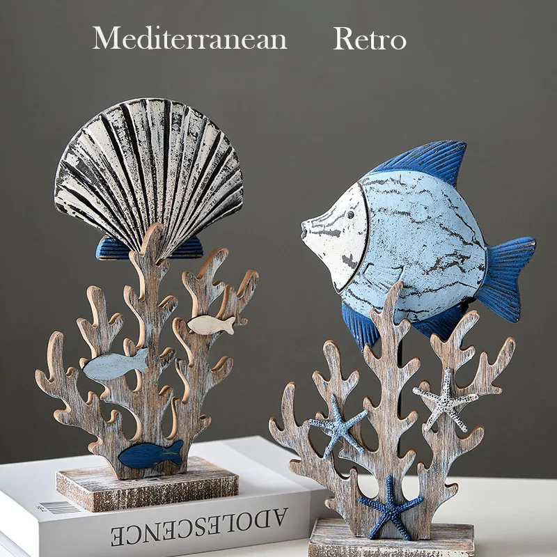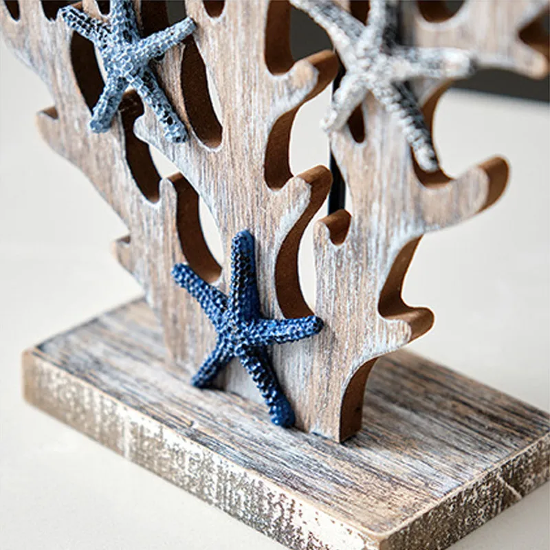 The coral figurine ornament made of wood and metal material, which is solid, colorfast and durable
